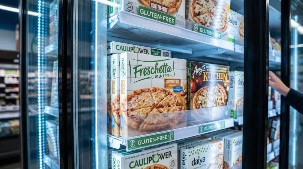 Cauliflower crusts = Lower carb, more vegetables. Caulipower is the big name, BUT do not assume cauliflower automatically means gluten free. Some brands sneak in wheat flour as a binder. Check. Every. Time. (Brands love a surprise “recipe update.”)