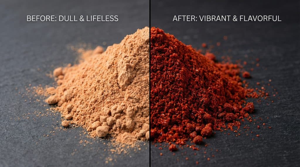 The pro move: Use it twice. Bloom half at the start for depth, add the rest at the end for brightness. This one adjustment can take a dish from “fine” to “wait, what did you do to this?”